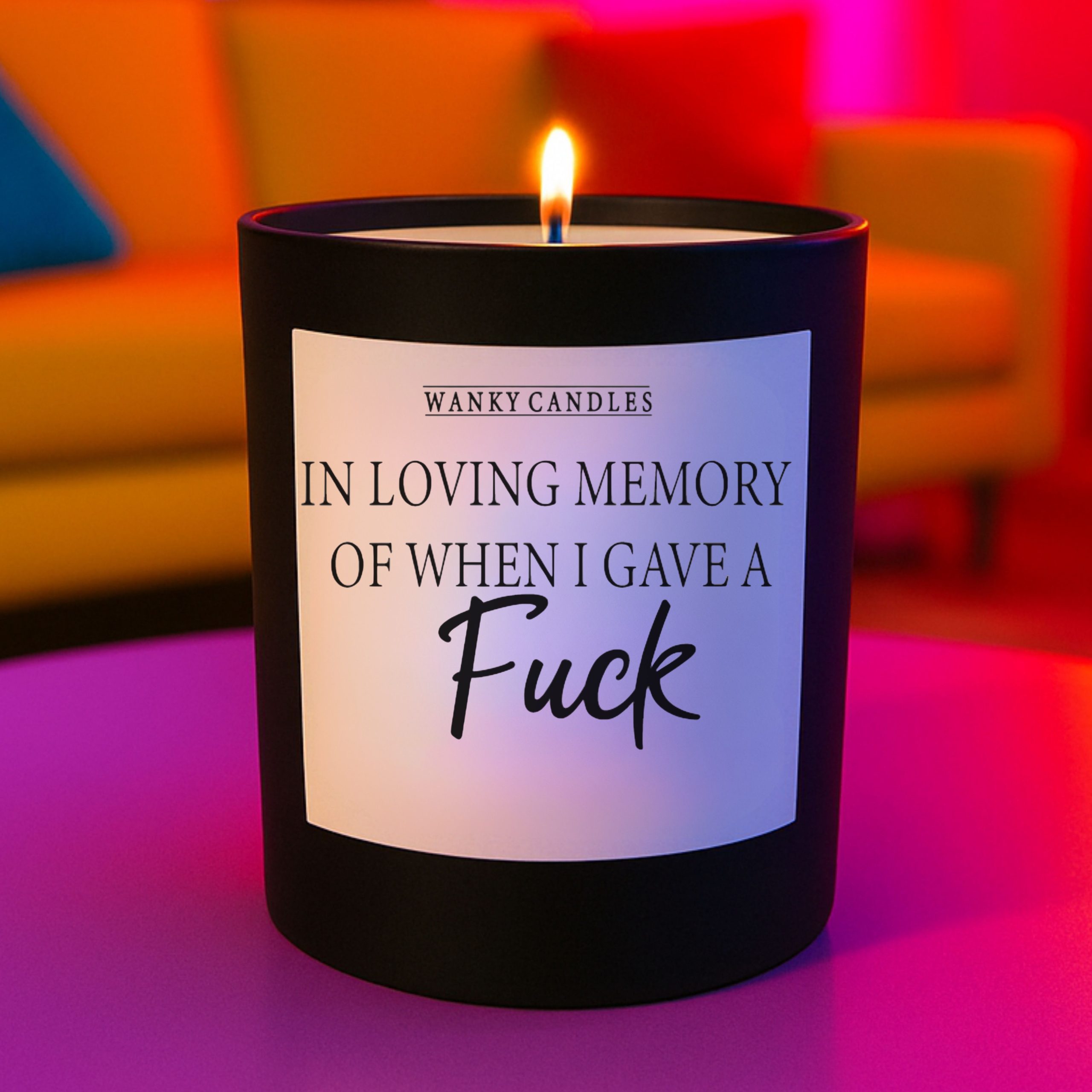 Wanky Candle Black Jar Candle IN LOVING MEMORY OF WHEN I GAVE A FUCK WCBJ21